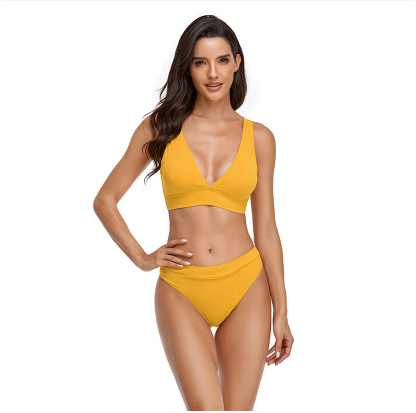 Bikini Swimsuit Four-color Split Backless Sexy Solid Color Sports Swimming