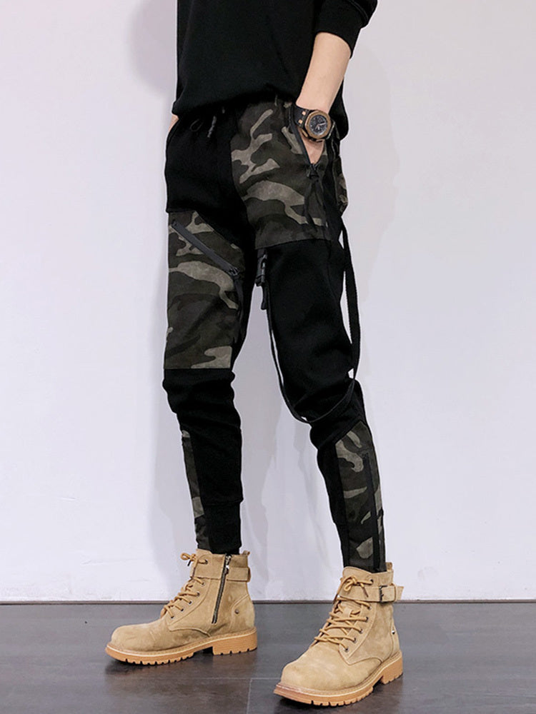 Functional Casual Overalls Camouflage Stitching Personality Slim