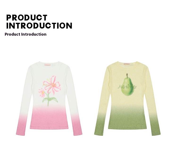 Gradient Flower Long-sleeved T-shirt For Women
