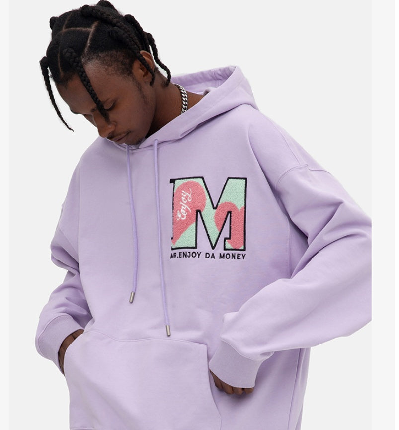 Hooded Couple's Striped Love Print Off Shoulder Coat Street Top