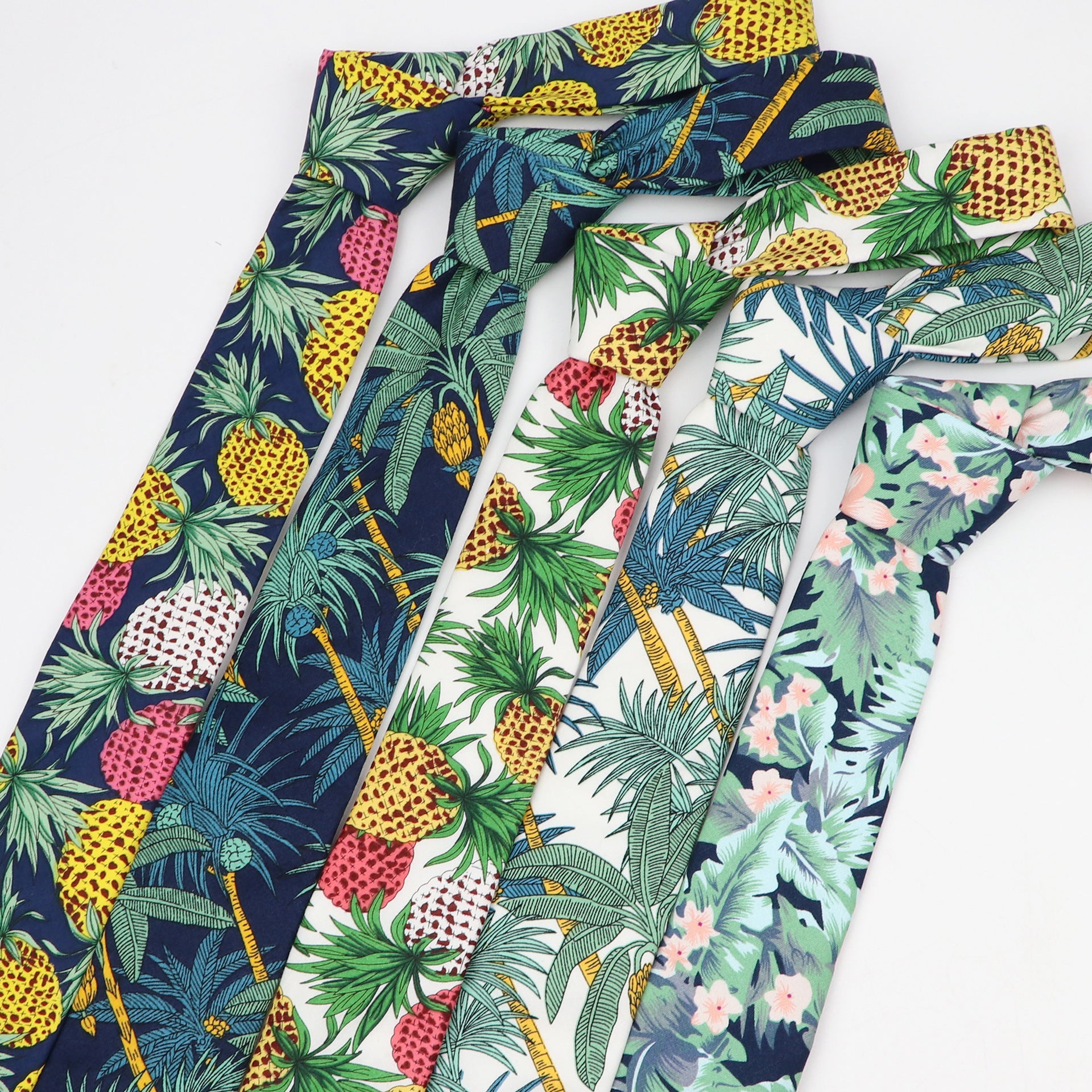 Korean Casual Men'S 7Cm Printed Tie, Pineapple Flower Tie, Cross-Border Source Manufacturer Wholesale