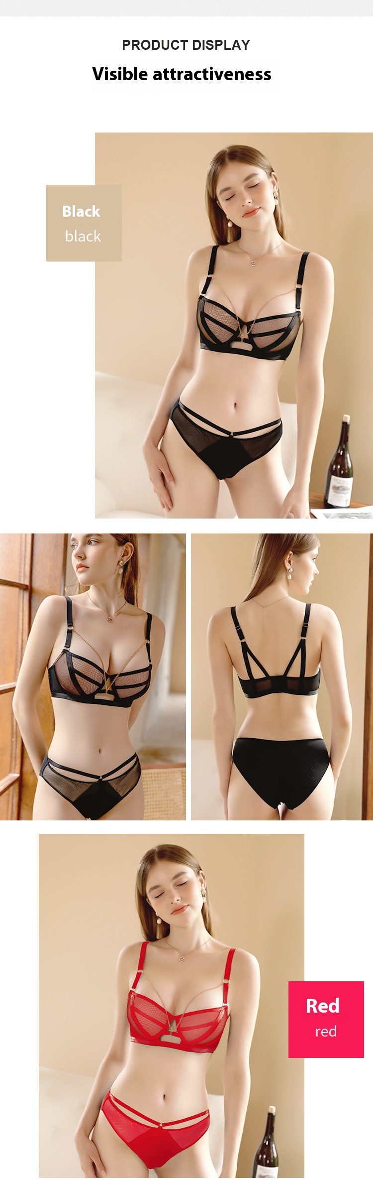 Lace-up Contrast Color Underwear Women's Chain Detachable Beauty Back