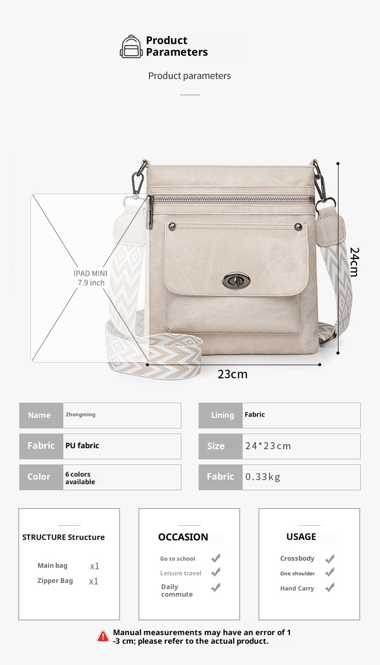 One Shoulder New Double Zipper Leisure Crossbody Bag