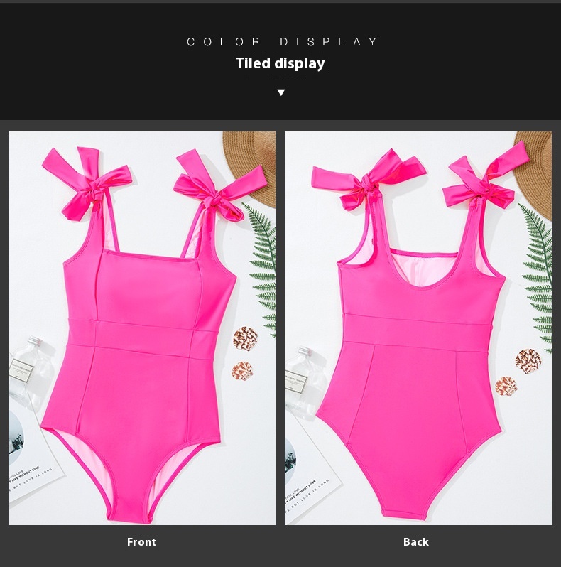 Solid Color Women's One-piece Swimming Suit Bundle Shoulder Strap High Elastic Belt