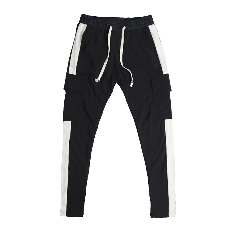 White Edge Woven Belt Large Pocket Zipper Casual Pants