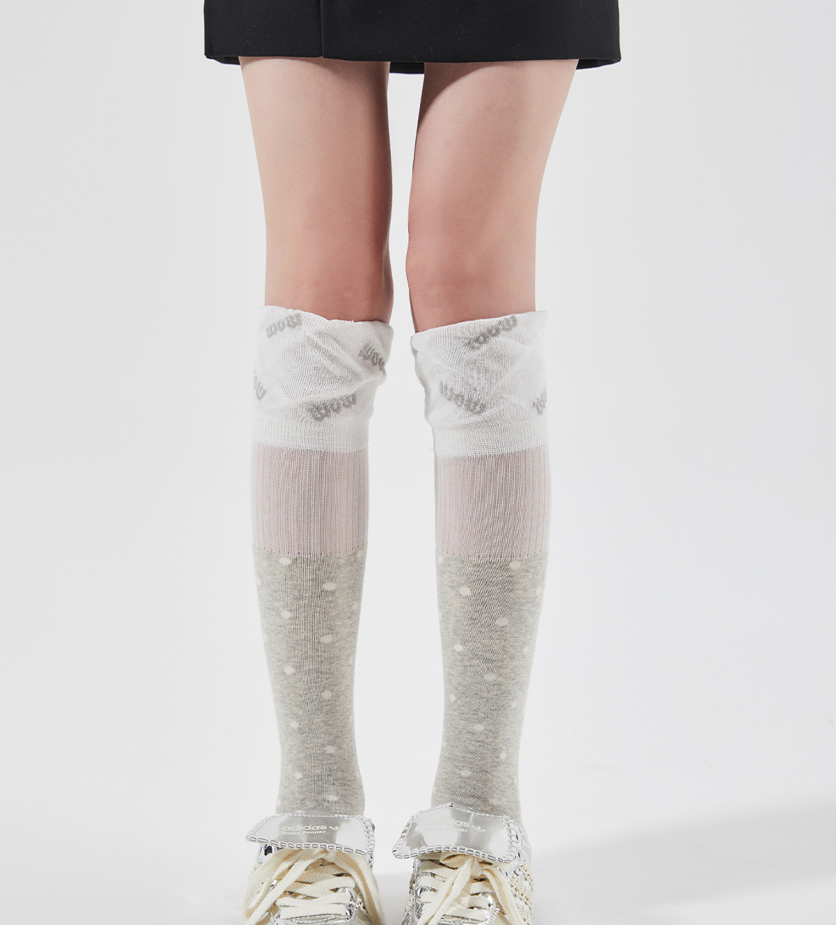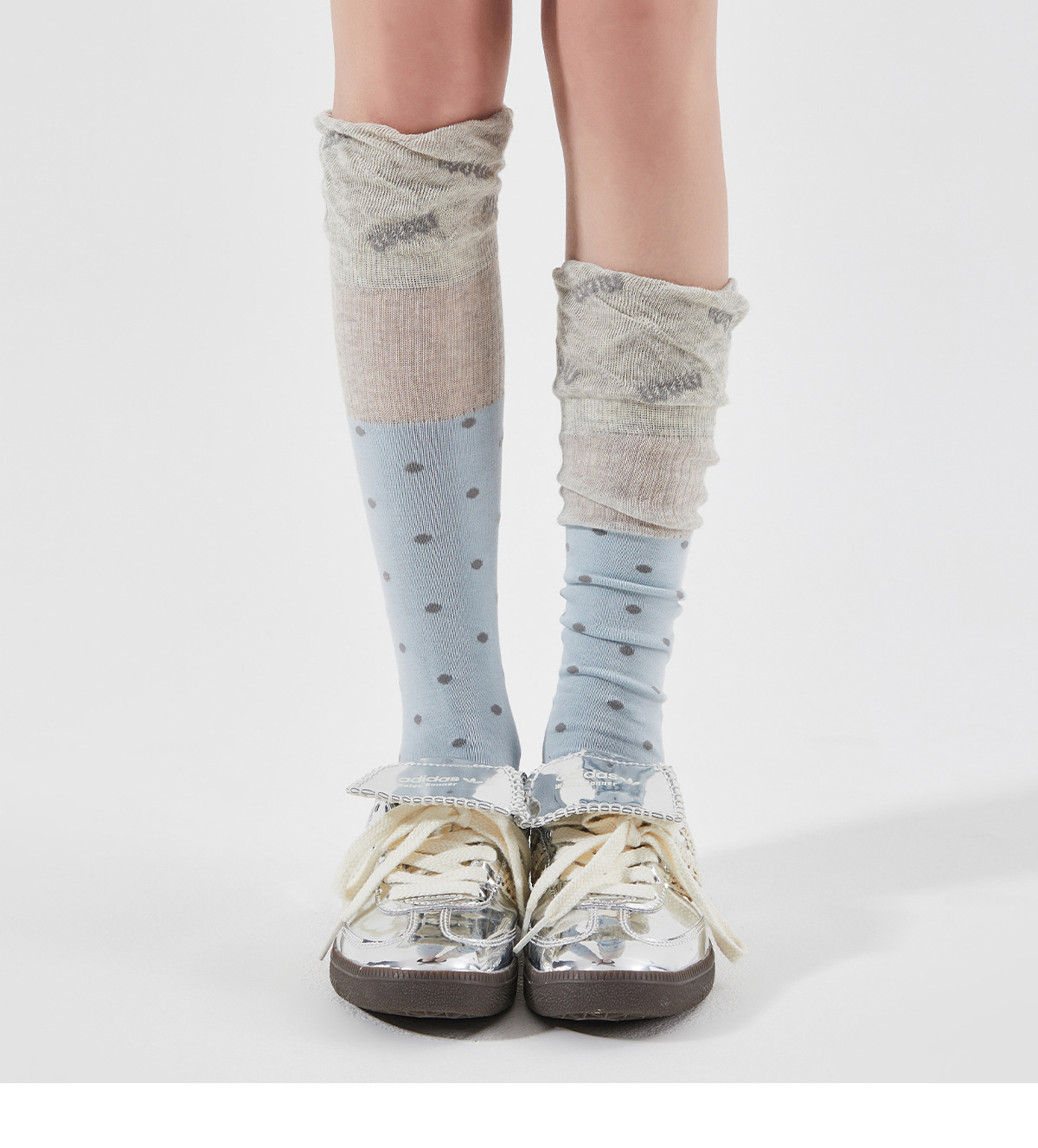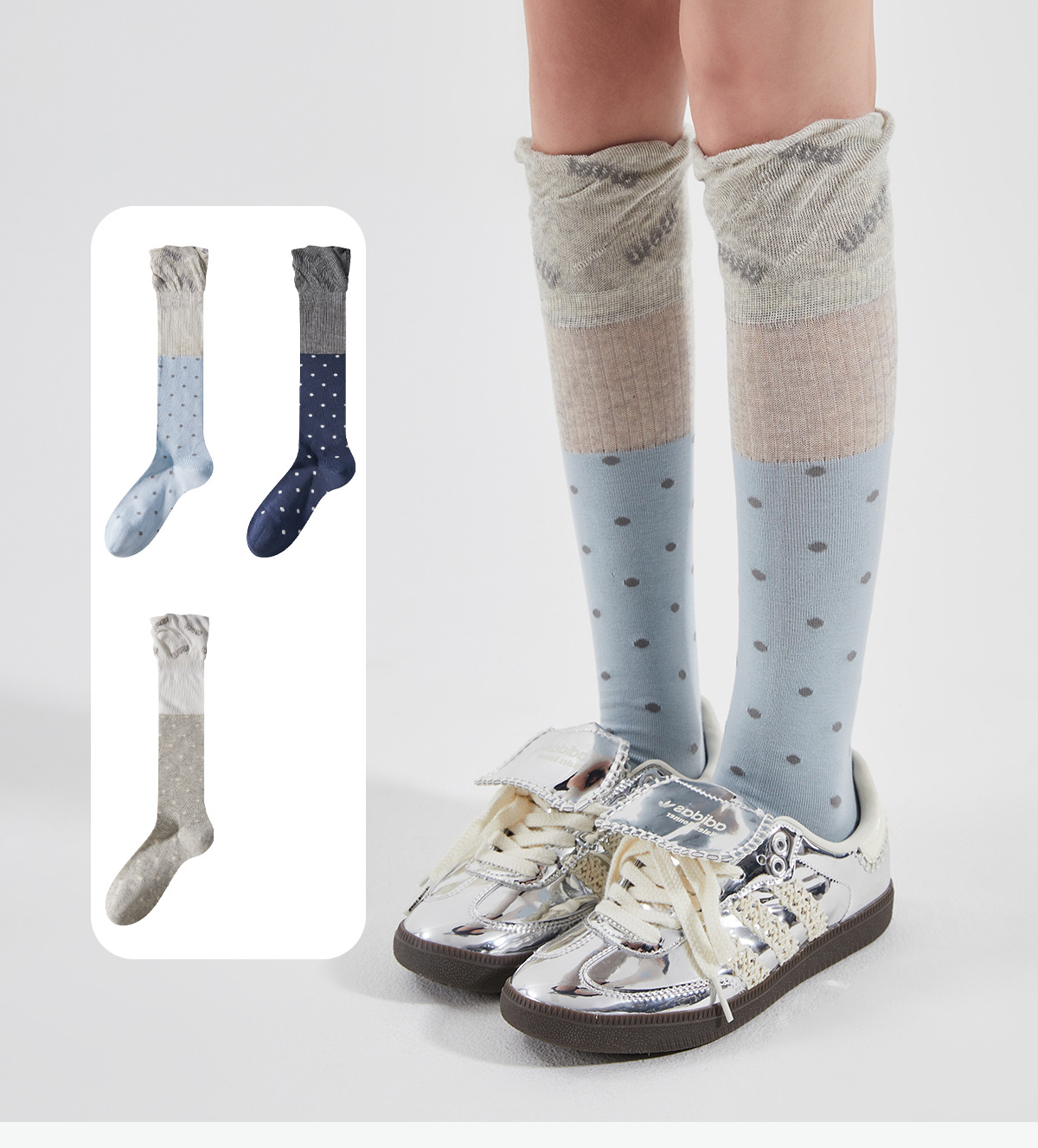 Women's Lace Letter Splicing Polka Dot Long Tube Comfortable Calf Socks