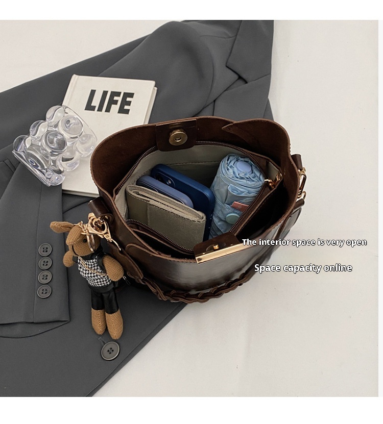 Women's Retro Messenger Bag Portable Bucket Bag