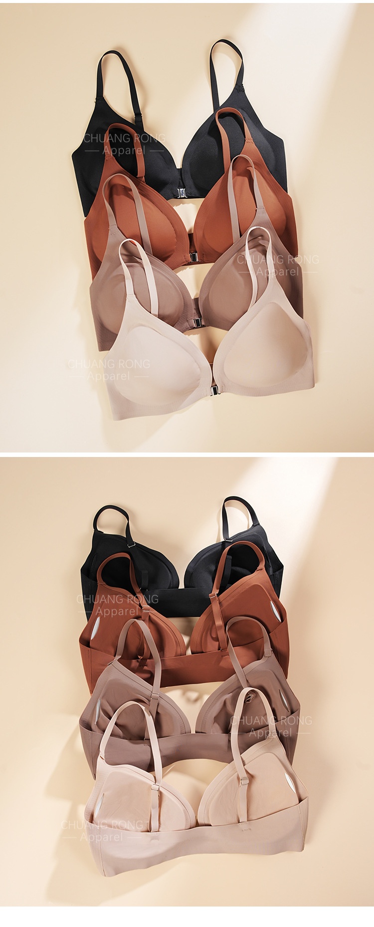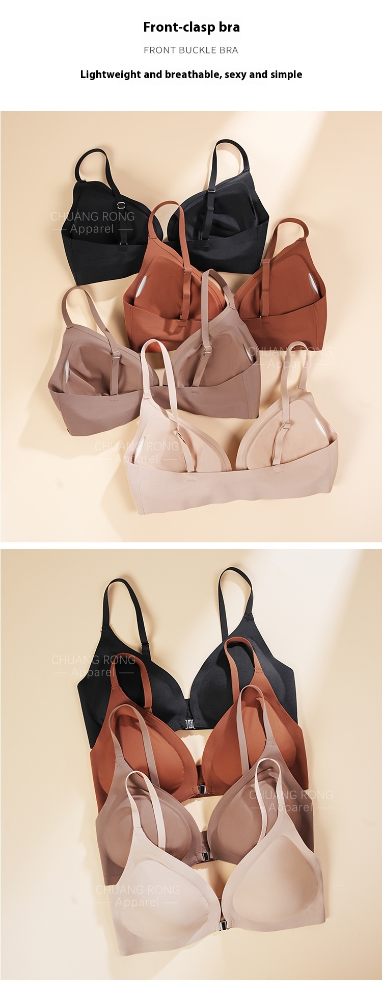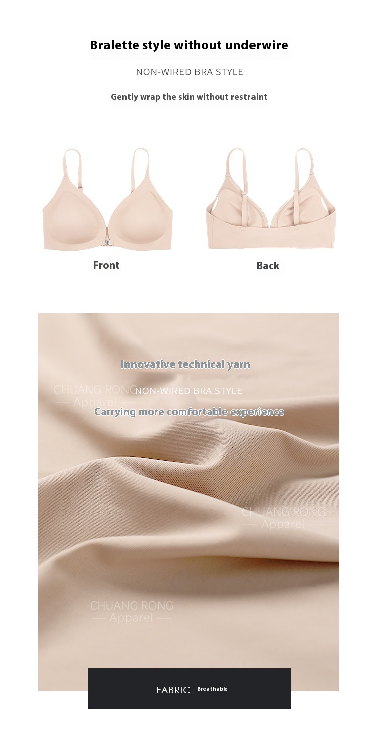 Women's Underwear Thin Small Breast Push Up Women's Front Buckle Backless Bra